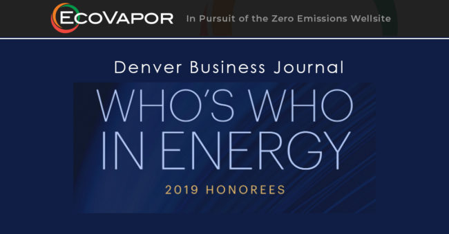 DENVER, CO (December 5, 2019) – The Denver Business Journal (DBJ) recognized Hans Mueller, Chief Technology Officer and Co-Founder of EcoVapor Recovery Systems, in their Who’s Who in Energy for 2019. DBJ chose 103 people to be featured based on a combination of industry outreach, internal research and open nominations. This is the ninth edition…