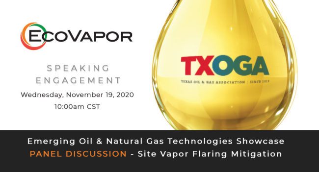 DENVER, CO (November 13, 2020) – EcoVapor Recovery Systems, LLC announced today that is scheduled to speak at the Texas Methane & Flaring Coalition’s Emerging Oil & Natural Gas Technologies Showcase. The conference is a virtual event. Jeff Wilson with EcoVapor Product Management is scheduled to participate in a panel discussion “Site Vapor Flaring Mitigation”…