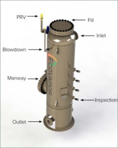 The vessel design ensures effective diffusion of the gas stream across the diameter of the solid media bed and optimal contact with the media by sizing for the appropriate gas velocity.