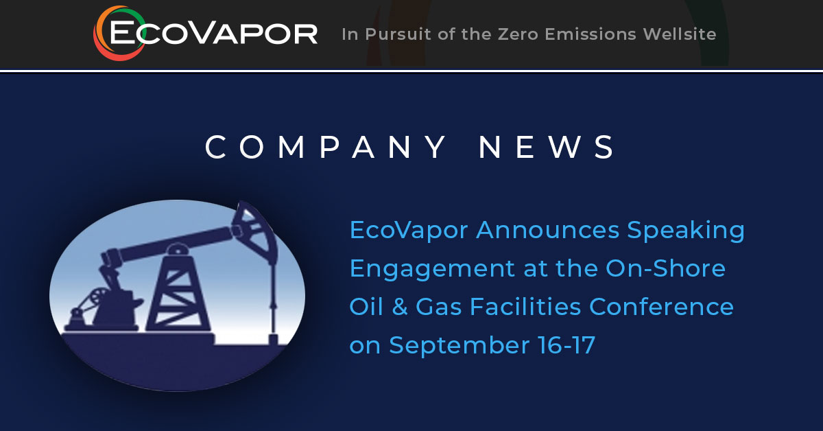DENVER, CO (November 13, 2020) – EcoVapor Recovery Systems, LLC announced today that is scheduled to speak at the Texas Methane & Flaring Coalition’s Emerging Oil & Natural Gas Technologies Showcase. The conference is a virtual event. Jeff Wilson with EcoVapor Product Management is scheduled to participate in a panel discussion “Site Vapor Flaring Mitigation”…